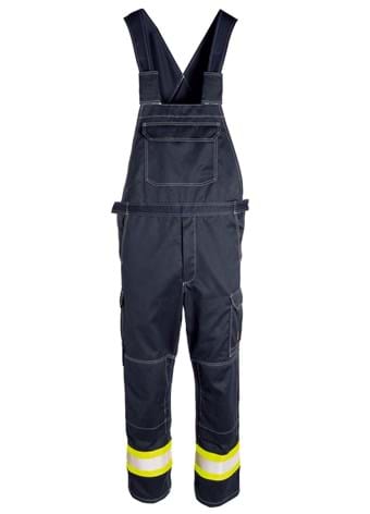 PFAS-free and Inherent Flame Retardant bib 'n' brace with increased visibility, front in Cantex Weld and back in Cantex Stretch. Cantex Stretch provides the bib 'n' brace with flexibility and gives you freedom of movement with high levels of comfort, whil Adjustable braces with hidden fixed lock closing and elastic in back. Chest pocket with flap. Inside pocket. Adjustable waist. Side pockets. Cargo pocket with flap, mobile phone pocket, pencil loop and concealed keyring holder. Ruler pocket with flap and reinforced bottom. Kneepad pockets with two different placement levels. Hip pockets with flap. Contrast stitching. Long and short sizes - will be amended after order. Approximately 5 days extra delivery time.