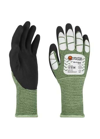 Glove with high Electric Arc protection. (13-4HFR-AF) Optimised for high Electric Arc risks. Perfect in tough working conditions with high heat, flame and Electric Arc risks. High performance in cut resistance. PPE Level 2 on glove, PPE 3 protection on the most exposed areas.