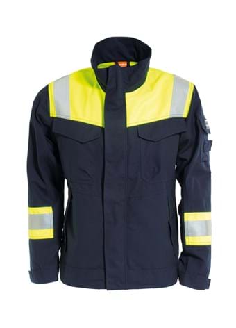 Non-metal and Inherent Flame Retardant jacket with increased visibility in a light fabric with a comfortable feel and good tear resistance. Concealed front zip and press studs. Extended back. Chest pockets with flaps. Sleeve pocket with flap, hidden keyring holder and strap for ID-pocket. Side pockets with flaps. Two inside pockets with flaps. Inside mobile phone pocket. Draw cord at the bottom of the jacket. Adjustable cuffs. Reflective stripes on shoulders and sleeves. *If the garment is mainly intended for welding processes, please ask Tranemo for usage advice.
