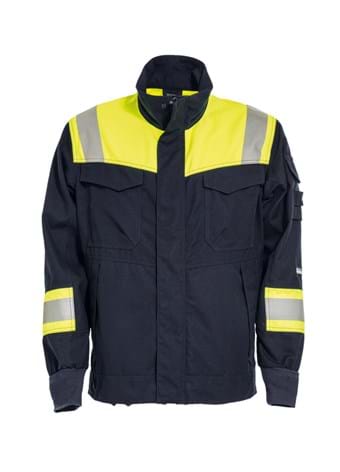 Non-metal and Inherent Flame Retardant jacket with knitted cuffs and increased visibility in a light fabric with a comfortable feel and good tear resistance. Concealed front zip and press studs. Extended back. Chest pockets with flaps. Sleeve pocket with flap, hidden keyring holder and strap for ID-pocket. Side pockets with flaps. Two inside pockets with flaps. Inside mobile phone pocket. Draw cord at the bottom of the jacket. Knitted cuffs. Reflective stripes on shoulders and sleeves. Special order – please allow an additional 5 days approximately.