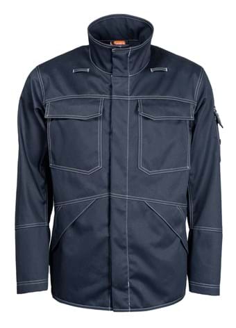 PFAS-free and Inherent Flame Retardant jacket in Cantex Weld/Cantex Weld Stretch. Concealed front zip and press studs. Two loops for communication equipment. Chest pockets with flaps. Sleeve pocket with flap, hidden keyring holder and strap for ID-pocket. Larger zip pocket under left chest pocket. Roomy side pockets with flap. Adjustable cuffs with press studs. Inside pocket. Extended back. Draw cord at waist. Contrast stitching.