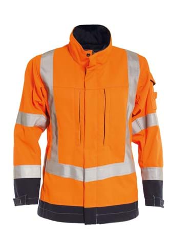 Non-Metal and Inherent Flame Retardant Hi-Vis ladies jacket with vertical chest pockets in a light fabric with a comfortable feel and good tear resistance. Concealed front zip and press studs. Extended back with two slits for enhanced movement. Vertical chest pockets with zip. Side pockets. Sleeve pocket with flap and concealed keyring holder. Inside mobile phone pocket. Inside pockets/document pockets. Adjustable cuffs. Contrast stitching. *The jacket has a combined certification and is approved for EN ISO 20471 CL.3 when worn together with Tranemo trousers or bib 'n' brace certified according to EN ISO 20471 CL.1 or CL.2.
