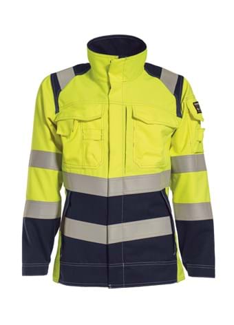 Non-metal and Inherent Flame Retardant Hi-Vis ladies jacket in a light fabric with a comfortable feel and good tear resistance. Concealed front zip and press studs. Extended back with two side slits for enhanced movement. Two loops for communication equipment. Right chest pockets with flap, mobile phone pocket and strap for pencils. Left chest pocket with flap and concealed keyring holder. Vertical chest pocket with zip. Sleeve pocket with flap, hidden keyring holder and strap for ID-pocket. Side pockets with flaps. Adjustable cuffs. *The jacket has a combined certification and is approved for EN ISO 20471 CL.3 when worn together with Tranemo trousers or bib 'n' brace certified according to EN ISO 20471 CL.1 or CL.2.