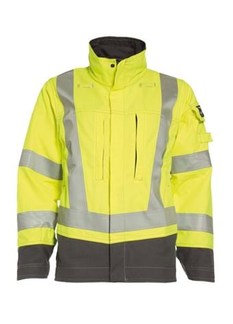 Non-metal and Inherent Flame Retardant Hi-Vis ladies jacket with vertical chest pockets in a light fabric with a comfortable feel and good tear resistance. Concealed front zip and press studs. Two loops for communication equipment. Vertical chest pockets with zip. Side pockets. Sleeve pocket with flap and concealed keyring holder. Inside mobile phone pocket. Inside pockets/document pockets. Adjustable waist and cuff. Contrast stitching. *The jacket has a combined certification and is approved for EN ISO 20471 CL.3 when worn together with Tranemo trousers or bib 'n' brace certified according to EN ISO 20471 CL.1 or CL.2.