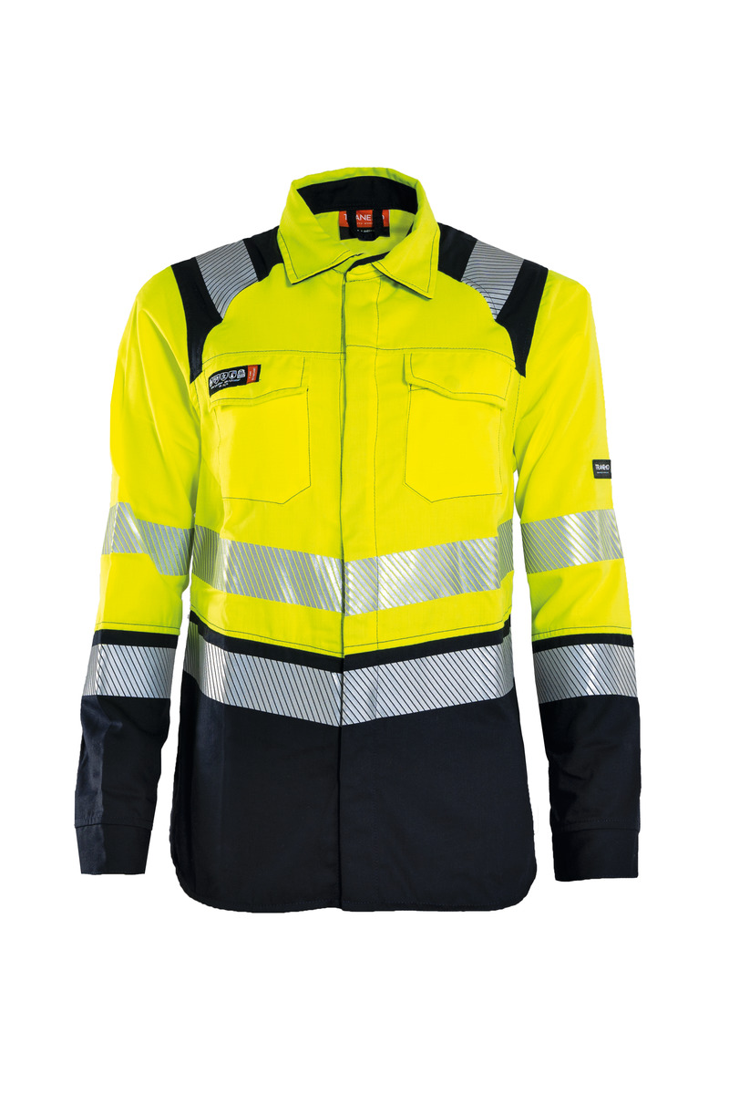 Non-Metal Inherent Flame Retardant Hi-Vis ladies shirt. Concealed front closing with plastic stud fastener. Chest pockets with flap. Heat sealed reflective stripes. Back with ventilation. Adjustable cuffs. *The shirt has a combined certification and is approved for EN ISO 20471 CL.3 when worn together with Tranemo trousers or bib 'n' brace certified according to EN ISO 20471 CL.2.