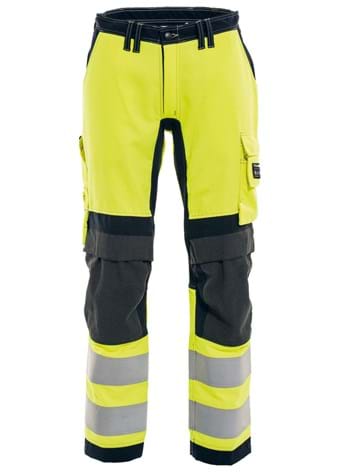 Non-metal and Inherent Flame Retardant ladies trousers with stretch for excellent fit and increased comfort ensuring full mobility at work. Reinforced fly and stretch zones in crotch. Side pockets. Cargo pocket with stretch zone and flap with concealed keyring holder, mobile phone pocket with flap. Ruler pocket with tool pockets and knife button with loop. Shaped knees with kneepad pockets in HTFR Dobby and stretch zones. Back yoke in stretch. Back pockets with pocket flaps. Back hem in HTFR Dobby. Adjustable foot width with press studs.