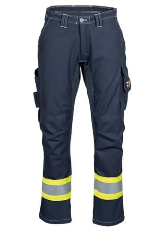 Non-metal and Inherent Flame Retardant ladies trousers with increased visibility and stretch for excellent fit and increased comfort ensuring full mobility at work. Reinforced fly and stretch in crotch. Side pockets. Cargo pocket with flap, mobile phone pocket, pen pockets and concealed keyring holder. Ruler pocket with reinforced bottom, knife loop and concealed knife button. Shaped knees with inside kneepad pockets with two different placement levels. Stretch in back yoke and on the outside of the thigh. Hip pockets with pocket flap.