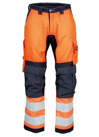 Non-metal and Inherent Flame Retardant ladies trousers with stretch for excellent fit and increased comfort ensuring full mobility at work. Reinforced fly and stretch zones in crotch. Side pockets. Cargo pocket with stretch zone and flap with concealed keyring holder, mobile phone pocket with flap. Ruler pocket with tool pockets and knife button with loop. Shaped knees with kneepad pockets in HTFR Dobby and stretch zones. Back yoke in stretch. Back pockets with pocket flaps. Back hem in HTFR Dobby. Adjustable foot width with press studs.