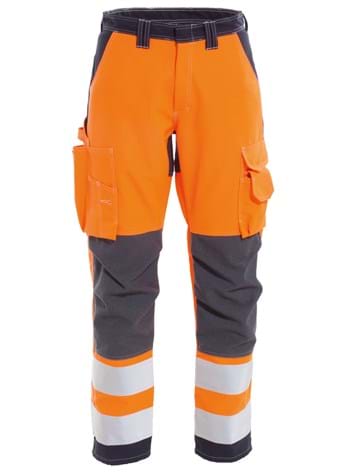 Non-Metal and Inherent Flame Retardant Hi-Vis ladies trousers in a comfortable and tear resistant fabric with good colourfastness. Side pockets. Hip pockets with flaps. Left cargo pocket with flap and mobile phone pocket. Right cargo pocket with tool pockets and ruler pocket. HTFR Dobby reinforced and shaped knees with adjustable inside kneepad pockets. Back hem in HTFR Dobby.