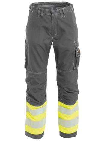 Non-metal and Inherent Flame Retardant Hi-Vis ladies trousers in a light fabric with a comfortable feel and good tear resistance. Side pockets. Back pockets with pocket flaps. Cargo pocket with flap, concealed keyring holder and first aid pocket. Ruler pocket and concealed knife button with loop. Shaped knees with adjustable inside kneepad pockets. Special order – please allow an additional 5 days approximately.