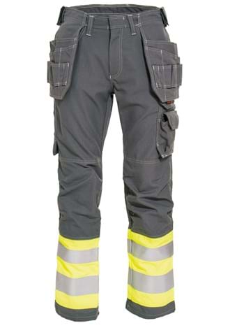 Non-metal and Inherent Flame Retardant Hi-Vis ladies trousers with nail pockets in a light fabric with a comfortable feel and good tear resistance. Tool holder belt loops in waist. HTFR Dobby reinforced tool pockets with tool strips. Side pockets. Back pockets with pocket flaps. Cargo pocket with flap, concealed keyring holder and first aid pocket. Ruler pocket and concealed knife button with loop. Shaped knees with adjustable inside kneepad pockets. Special order – please allow an additional 5 days approximately.