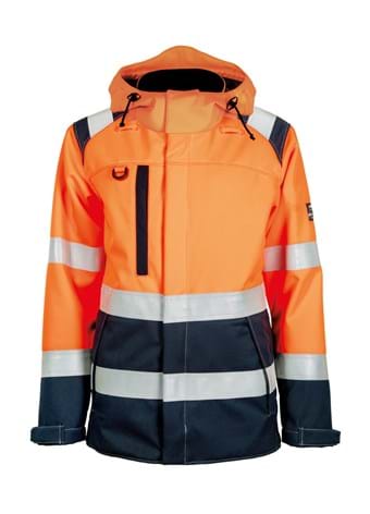 Non-Metal and Inherent Flame Retardant ladies Hi-Vis winter jacket with removable hood, taped seams and quilt lining. Wind and waterproof according to EN 343. Adjustable and removable hood with quilt lining. Hidden zip and stud fastener in front. Two loops for communication equipment. Vertical chest pocket with zip on right chest. Keyring holder. Side pockets with fleece lining and pocket flaps. Extended back with two side slits for enhanced movement. Adjustable cuffs. Wind stoppers in sleeves. Inside pocket for Ipad/documents. Fleece on the inside of the collar. Zip access for back heat seal badges. *The jacket has a combined certification and is approved for EN ISO 20471 CL.3 when worn together with Tranemo trousers or bib 'n' brace certified according to EN ISO 20471 CL.1 or CL.2. **The garment is tested in a 3 layer system together with basic underwear. Tranemo recommends underwear 5920/5940 and 5980.