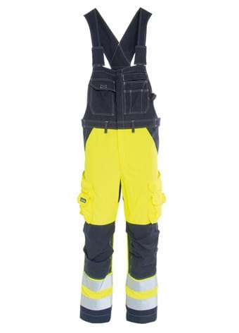Non-metal and Inherent Flame Retardant Hi-Vis bib 'n' braces with front zip and a thin lining to achieve higher protection against Electric Arc, IEC 61482-2 APC 2. Contrast stitching and front zip. Adjustable braces with hidden fixed lock closing and elastic in back. Chest pockets, one with flap. Concealed knife buttons. Inside pocket. Adjustable waist. Side pockets. Right cargo pocket with flap, ruler pocket, separate mobile phone pocket, pencil holder and concealed knife button with loop. Left cargo pocket with flap and concealed keyring holder, ruler pocket, first aid pocket and concealed knife button with loop. Shaped knees with adjustable inside kneepad pockets. Hip pockets with flap. Special order - please allow an additional 5 days approximately.