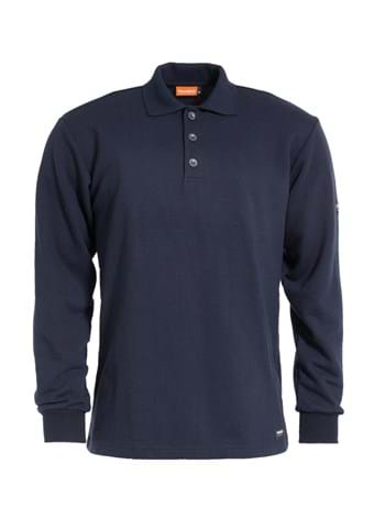 Non-metal, soft and comfortable Inherent Flame Retardant sweatshirt with collar and buttons. 20% recycled cotton. Knitted cuffs.