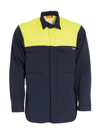Non-metal and Inherent Flame Retardant shirt made from a comfortable fabric with the highest protection against molten aluminium. The fabric also has good properties against other molten metals. Double button placket and concealed press studs. Chest pockets with flaps. Ventilations on the back. Adjustable cuffs with press studs.