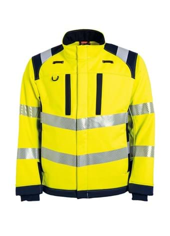 Non-metal and Inherent Flame Retardant softshell jacket that reaches PPE category 4 (higher than 40 cal/cm²). The jacket is ergonomically shaped for working with raised arms and is made from a soft, wind and water resistant softshell fabric. Concealed front zip and double storm flap with press studs. Two holders for headset. Chest pockets with zip. Side pockets with zip. Inside knitted cuffs in sleeves. Drawcord at the bottom of the jacket. Heat sealed reflective stripes for greater comfort. *The jacket has a combined certification and is approved for EN ISO 20471 CL.3 when worn together with Tranemo trousers or bib 'n' brace certified according to EN ISO 20471 CL.1 or CL.2.