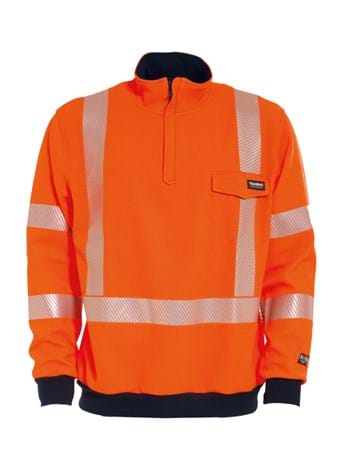 Soft and comfortable Non-metal and Inherent Flame Retardant sweatshirt with short zipped front. Chest pocket with flap. Ribbed sleeves and hem. Heat sealed reflective stripes. *The sweatshirt has a combined certification and is approved for EN ISO 20471 CL.3 when worn together with Tranemo trousers or bib 'n' brace certified according to EN ISO 20471 CL.1 or CL.2.