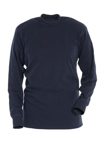 Non-metal and Inherent Flame Retardant t-shirt underwear with long sleeves in a soft tricot with 20% recycled cotton. Round neck and long sleeves.