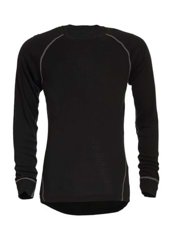 Non-metal and Inherent Flame Retardant long sleeved T-shirt underwear in Merino wool/FR viscose tricot. Round neck. Extended back.