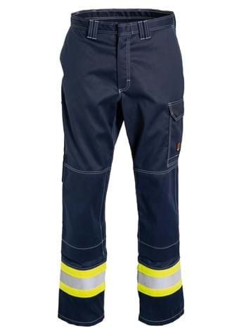 PFAS-free and Inherent Flame Retardant trousers with increased visibility, front in Cantex Weld and back in Cantex Stretch. Cantex Stretch provides the trousers with flexibility and gives you freedom of movement with high levels of comfort, while Cantex W Front pockets. Hip pockets with flap. Cargo pocket with flap, mobile phone pocket and concealed keyring holder for ID-pocket. Ruler pocket with flap and reinforced bottom. Kneepad pockets with two different placement levels. Adjustable foot width with press studs. Reinforced back hem. Contrast stitching.