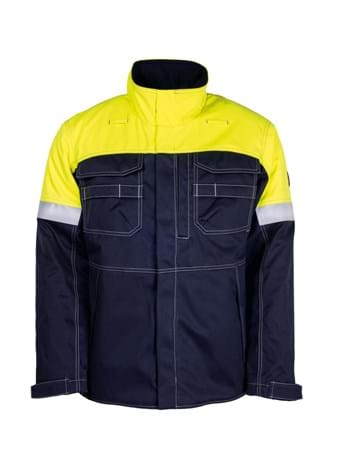 PFAS-free and Inherent Flame Retardant Winter jacket with increased visibility, sleeves and front in Cantex Weld and back in Cantex Stretch. The jacket has a quilted lining and fleece in collar. Concealed front zip and press studs. Extended back and two side slits for enhanced movement. Two loops for communication equipment. Chest pockets with flap, tool strap and concealed keyring holder for ID-pocket. Vertical pocket with zip on left chest. Roomy side pockets with flap. Adjustable cuffs and inside windstopper. Inside pocket. Contrast stitching. *The garment is tested in a 3 layer system together with basic underwear. Tranemo recommends underwear 5920/5940 and 5980.