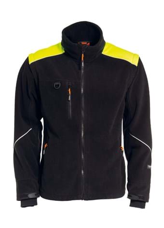 Wind resistant fleece jacket with detachable sleeves, increased visibility and good breathability. Chest pocket with zip. Keyring holder. Side pockets with zip. Draw cords at the bottom of the jacket. Extended back. Adjustable cuff with inside knitted cuffs. Reflective details on shoulder and sleeve.