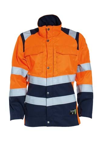 High-Visibility ladies jacket. Zip closing with storm flap and press studs. Extended back with two zip slits for enhanced movement. Chest pockets with flap. Chest pocket with flap and concealed keyring holder. Vertical pocket with zip. Sleeve pocket. Side pockets. Adjustable cuffs. Inside pocket. *The jacket has a combined certification and is approved for EN ISO 20471 CL.3 when worn together with Tranemo trousers or bib 'n' brace certified according to EN ISO 20471 CL.1 or CL.2. **Garments in colour 93 complies with RIS-3279-TOM.
