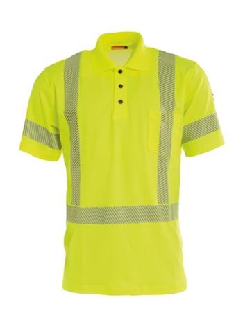 Soft and shape retaining High-Visibility poloshirt in tricot with a cotton finish on the inside for comfort. Buttons at front. Chest pocket. Heat sealed reflective stripes for higher comfort. *The T-shirt has a combined certification and is approved for EN ISO 20471 CL.3 when worn together with Tranemo trousers or bib 'n' brace certified according to EN ISO 20471 CL.1 or CL.2.