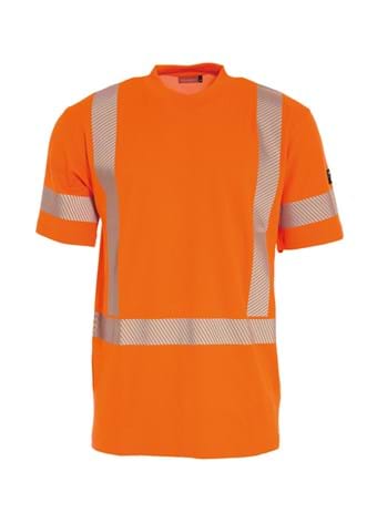 Soft and shape retaining High-Visibility T-shirt in tricot with a cotton finish on the inside for comfort. High-Visibility T-shirt. Heat sealed reflective stripes. *The T-shirt has a combined certification and is approved for EN ISO 20471 CL.3 when worn together with Tranemo trousers or bib 'n' brace certified according to EN ISO 20471 CL.1 or CL.2.