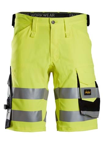 Slim-fitting, high-visibility Class 1 shorts that are fit for craftsmen working in the general construction, roadworks, or transportation sectors.