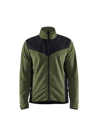 A knitted jacket with a nicely designed collar and unbeatably comfortable fleece quality. This jacket is made of a unique material that can best be described as three-dimensional fleece. The brushed material gives the jacket its appearance with 3D pattern, supple, stretchy comfort and heat when it's most needed. For greater durability there are reinforcing softshell panels on the jacket's exposed areas, and as there is no softshell in the underarms the ventilation is better. Excellent areas for corporate profiling, but just as good away from work as on the job. Also available in a women's model 5943.
