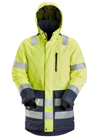 Fluorescent and insulating parka with waterproof construction. The stretch panels provide freedom of movement and increased work comfort, especially in cold and wet winter conditions.