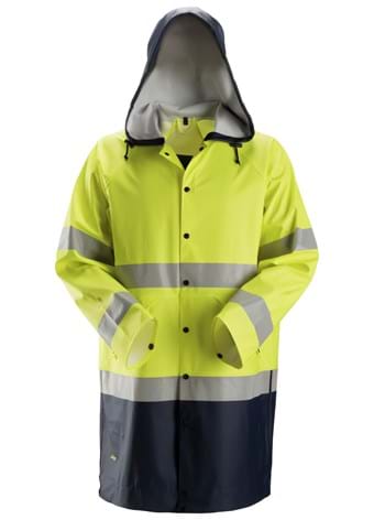 8261Safety rain jacket in PU providing protection against heat, flames, wind and rain. It is classified in visibility class 3, providing extra security in poor lighting conditions.