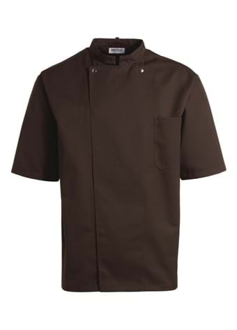 Unisex jacket with short sleeves This model is large in size, it is with Chinese bucket, 1 breast pocket, hidden push button closure, it has a back, neck strap for slit, slit in the sides.