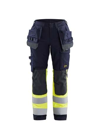 Comfortable fire-retardant trousers with women's fit and stretch function. The ideal work trousers for women who work in exposed environments. Equipped with seam pockets and smart details such as stretch panels for increased freedom of movement and flexibility. The oil-, dirt- and water-repellent material with high abrasion resistance has the fire-retardant protection built into the fibers. CORDURA®/Kevlar®/Protal® reinforcement on knees, ruler pocket and knife pocket and thigh pocket with space for phone. Certified according to EN ISO 20471; EN 1149-5; EN ISO 11612 and IEC 61482-2. Arc rating: 10.7 cal/cm² (applies to the stretch material). Also available in men's model 1487.