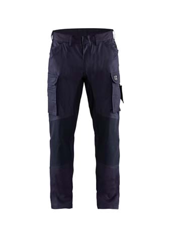 1486-1512-8900Flame retardant service trousers, ideal for maintenance work. Flexible and hard-wearing service trousers in inherent material with stretch sections, specifically suitable if you carry out maintenance work both indoors and outdoors in warmer temperatures. These trousers have a narrower fit and stretch panels in the crotch, seat and knees giving them even more flexibility and movement. Certified to EN 1149-5; IEC 61482-2, Class 1; EN ISO 11612 A1, B1, C1, F1. ATPV: 10,7 cal/cm², HAF 72,5% (regarding the stretch material).