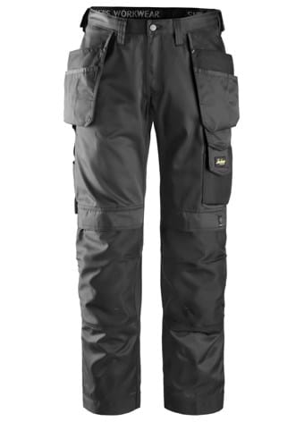 Craftsman's pants with holster pockets that are comfortable to work in and constructed to handle daily use. The loose -fitting pants are made of durable fabric and are provided with protective functions.