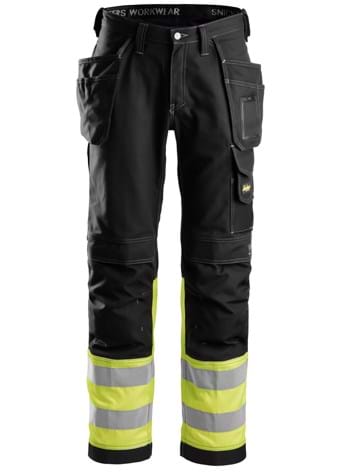 3235Work pants with holster pockets that are visible in dangerous environments and are designed to last for daily use. The pants provide reliable personal protection combined with optimal work comfort, abrasion resistance and flexibility.