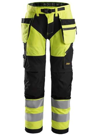 Extremely lightweight and flexible fluorescent work pants with holster pockets. The pants that have regular fit and a body -adjusted design are made of light stretch and offer visibility, freedom of movement and reliable work comfort.