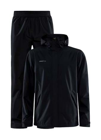 1910994-999000Versatile rain jacket and pants with mesh lining, two side pockets, adjustable running at the bottom and in hood as well as velcro at the sleeve and leg end.
