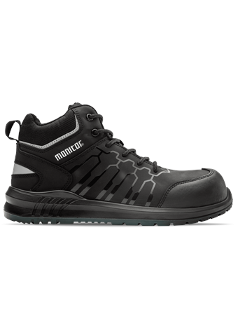 Monitor presents the new series Dynamic! Monitor hybrids a new sporty safety boot made with injection technology. The outsole is made of polyurethane with two densities, and the midsole has a softness of 50 shore A, which together with Monitors SS 2.0-mind sole gives a fantastic pleasant and shock absorbing shoe despite the slim outsole.