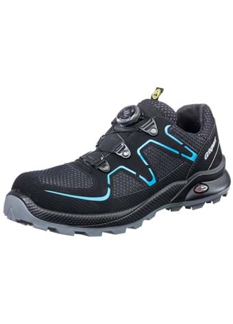 OF605Textil and microfiber material. BOA® L6 Closing system. Soft PU midsole. Stabilizing heel cap. Protestel-socket cap in fiberglass. Metal free. Anti-Static. Soft stitching. Cross-Safety Outsole of Rubber. Oil and heat-standing outsole. EN ISO 20345 S1P HRO HI SRC