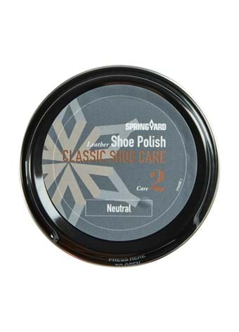 Shoe polish providing high gloss and care for smooth leather.Properties: Nourishes, protects, gives high gloss and prolong shoe life. Restores color.Directions for use: Apply a thin, even layer to clean, dry surface. Let dry. Buff to desired sheen with a clean cloth or brush. Repeat as necessary. Always test on inconspicuous area first.Other: This product contains a mixture of synthetic waxes and natural waxes such as carnauba wax from Palms leaves. The product is labeled as flammable due solvent.