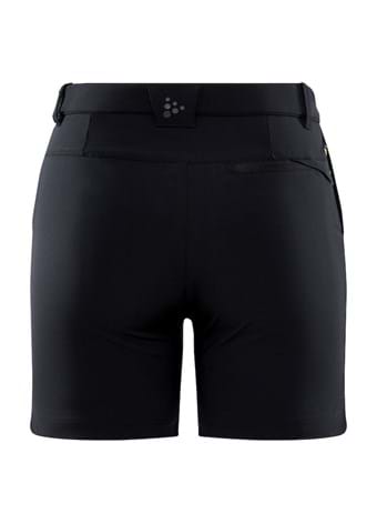 Advanced outdoor shorts made of 4-way stretch fabric with soft inside for optimal freedom of movement and comfort. Adjustable waist, belt straps and lots of zipper pockets. Soft 4-way stretch fabric with soft inside. Two side pockets with zipper. A zippered leg pocket. Adjustable waist with velcro and elastic. Back pocket with zipper. Belt straps at waist. Craft logo on the left hip also dot on the back of belt strap. CRAFT-logo press the button at the waist.