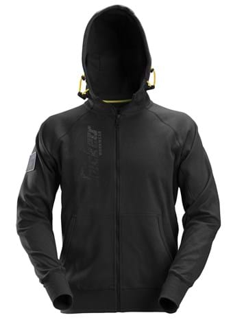Hoodie with zipper and vertically 3D printed Snickers Workwear logo. Modern look and the well -known Snickers Workwear Comfort.