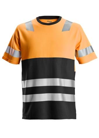 Fluorescent t-shirt with comfortable cotton on the inside and elastic reflective tape on the outside, giving visibility in class 1.