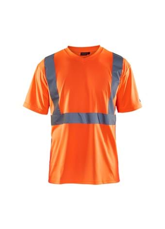 Comfortable safety t-shirts with V-neck. The material has good breathability and is certified according to EN ISO 20471 Class 2., clothing with high visibility.