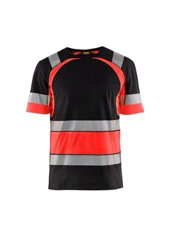 Modern, soft, comfortable cotton t-shirt. Hi-vis fabric trim with moisture-wicking and anti-odour properties. Round neck with reinforced neck seam. Segmented reflective trim for good ventilation and stretch properties to allow superior ease of movement. The dark area of the sweater consists of 100% cotton and the high vis area of 100% polyester. Certified according to EN ISO 20471, Class 1.