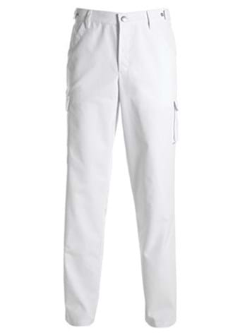 Adjustable waistband. Elastic in the rear. Hidden push buttons in gylp. 2 slant pockets. 1 rear pocket with hidden push button. 2 thigh pockets with flap and hidden push button. Steamer straps. Skr.lgd. 80 cm. 18119 - Skr.lgd. 90 cm.