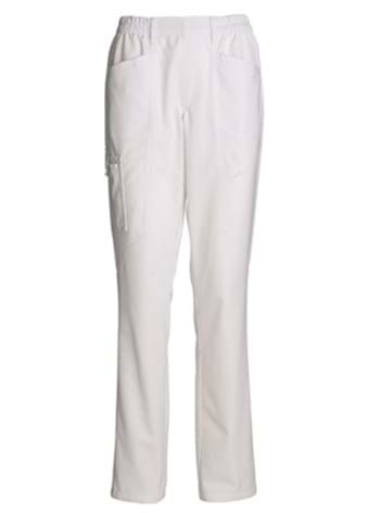 elastic in waistband. 2 back pockets. 2 Lock pockets. Thigh pocket with flap. Push button on thigh pocket is placed so that it does not scratch screen. No leg adjustment. Skr.lgd. 92 cm.